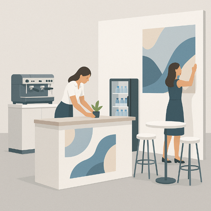 Allestimenti frigo, bar e cucina disponibili a noleggio e per qualsiasi esigenza, soluzioni professionali di altissimo livello oppure semplici integrazioni per offrire ai tuoi visitatori un'esperienza in stand di alto livello.